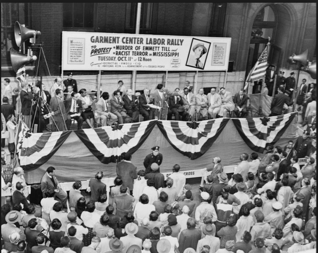 The hundreds of people gathered around at Emmet Till's funeral. These people were in full support of the trial.