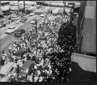 People and cars lined up to attend Emmet Till's funeral. Hundreds of people were in attendance.