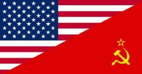 Flags representing the two sides of the war. The two sides were America and the Soviet Union.