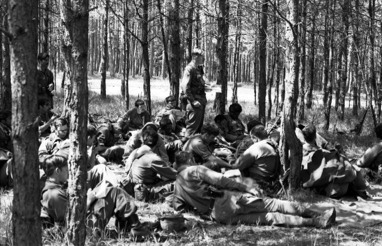 Company platoon and squad leaders receiving an Operation Order. These were given during field exercises.