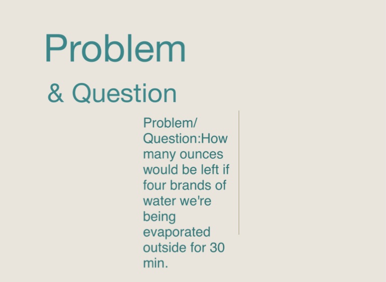 Problem/Question:How many ounces would be left if four brands of water we're being evaporated outside for 30 min.