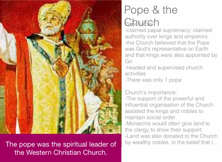 -the Church believed that the Pope was God's representative on Earth and that kings were also appointed by Go