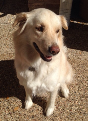 We chose Jacqueline's dog panting outside. She is panting because of the sun.