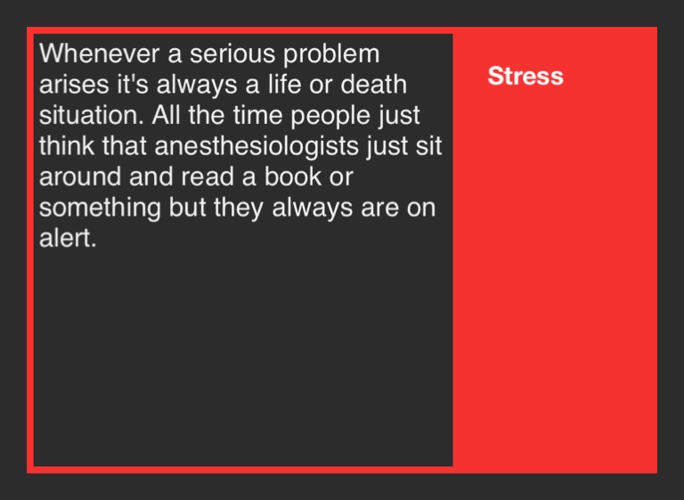 Whenever a serious problem arises it's always a life or death situation. All the time people just think that anesthesiologists just sit around and read a book or something but they always are on alert.