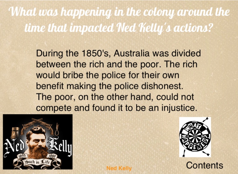 During the 1850's, Australia was divided between the rich and the poor. The rich would bribe the police for their own benefit making the police dishonest. The poor, on the other hand, could not compete and found it to be an injustice.