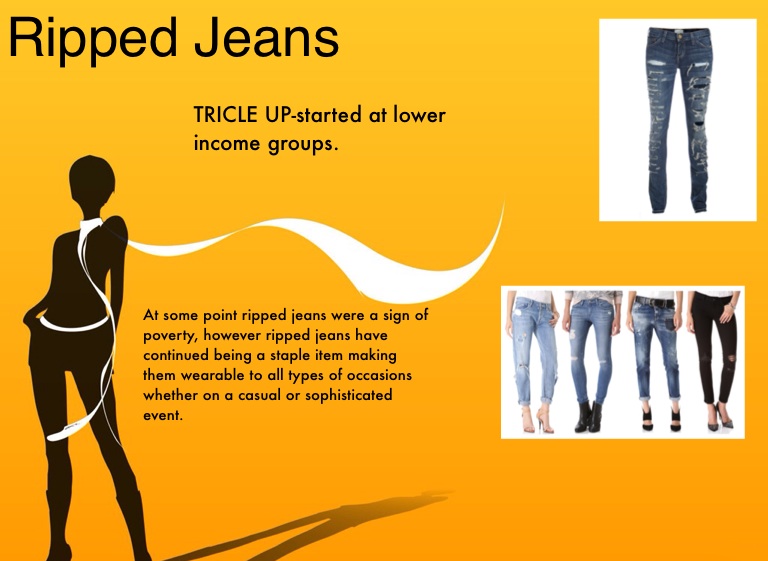 At some point ripped jeans were a sign of poverty, however ripped jeans have continued being a staple item making them wearable to all types of occasions whether on a casual or sophisticated event.
