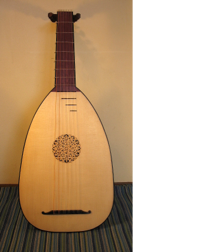 This is a lute, this was Elizabeth's favorite instrument. She was very successful in playing it.