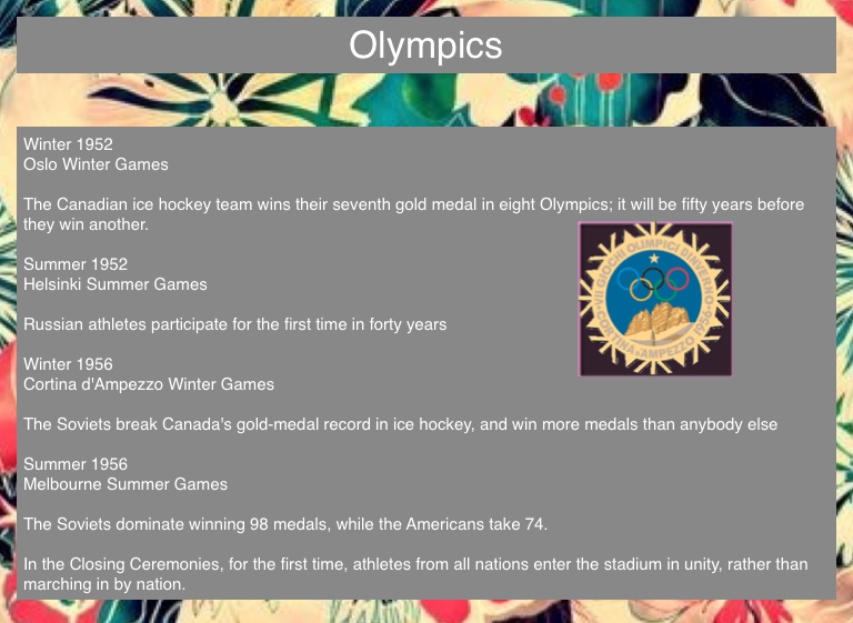 The Canadian ice hockey team wins their seventh gold medal in eight Olympics; it will be fifty years before they win another.
