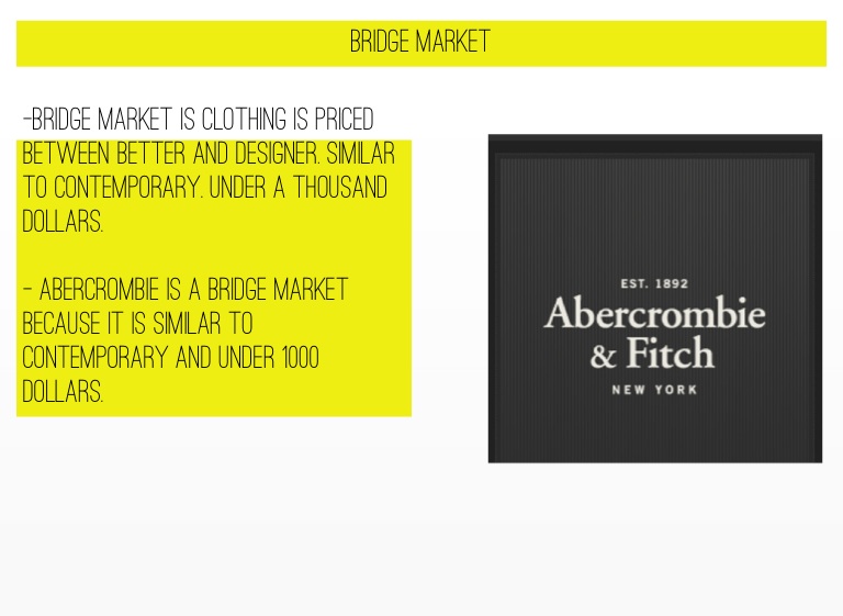 - Abercrombie is a bridge market because it is similar to contemporary and under 1000 dollars.