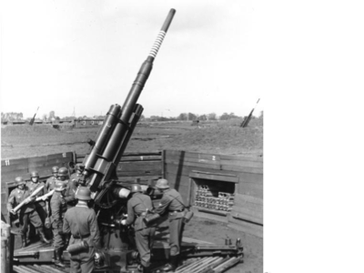 The anti-aircraft gun was a cannon that fired flack at the aircraft attempting to damage it.