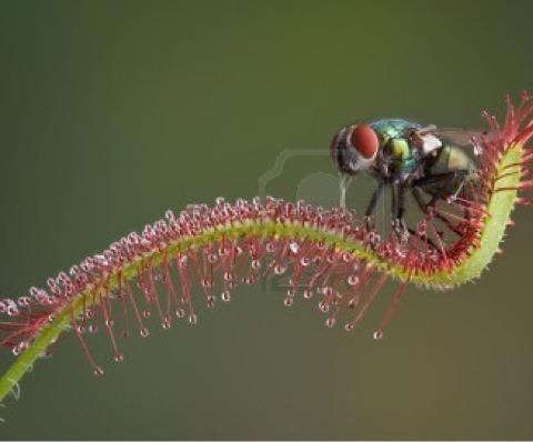 By creating a glue like substance in order to catch insects need for nutrients.