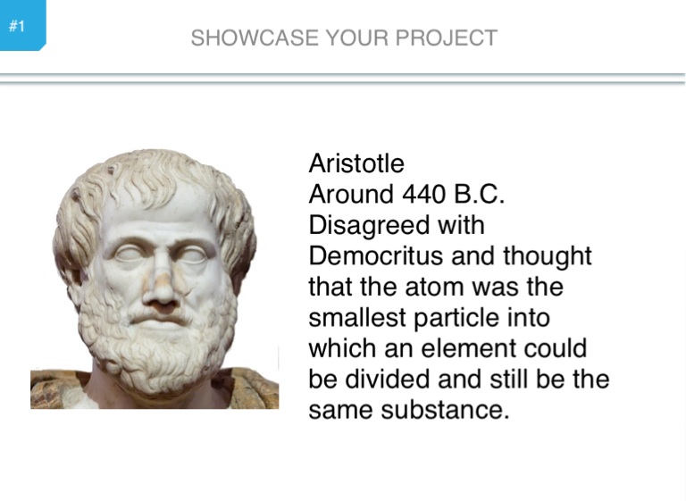 Disagreed with Democritus and thought that the atom was the smallest particle into which an element could be divided and still be the same substance.