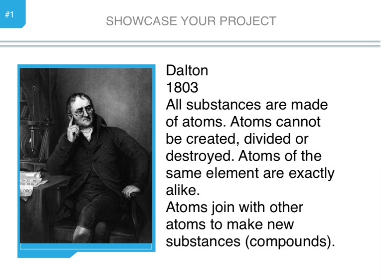 All substances are made of atoms. Atoms cannot be created, divided or destroyed. Atoms of the same element are exactly alike.