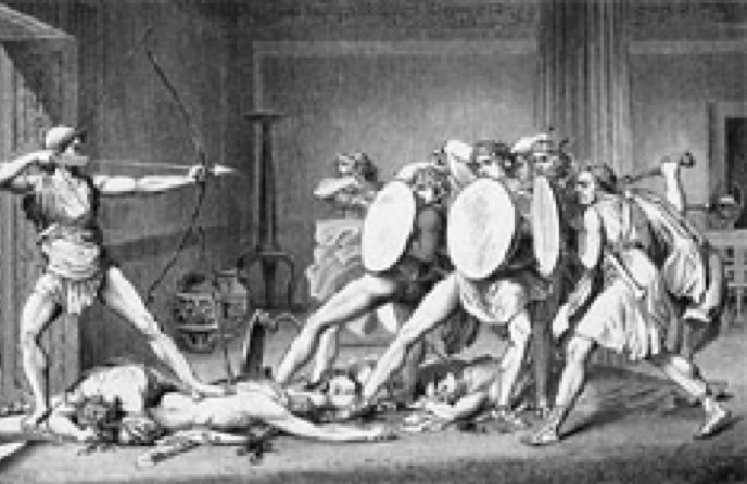 Antinous blames the impasse on Penelope, who, he says, seduces every suitor but will commit to none of them. He reminds the suitors of a ruse that she concocted to put off remarrying.