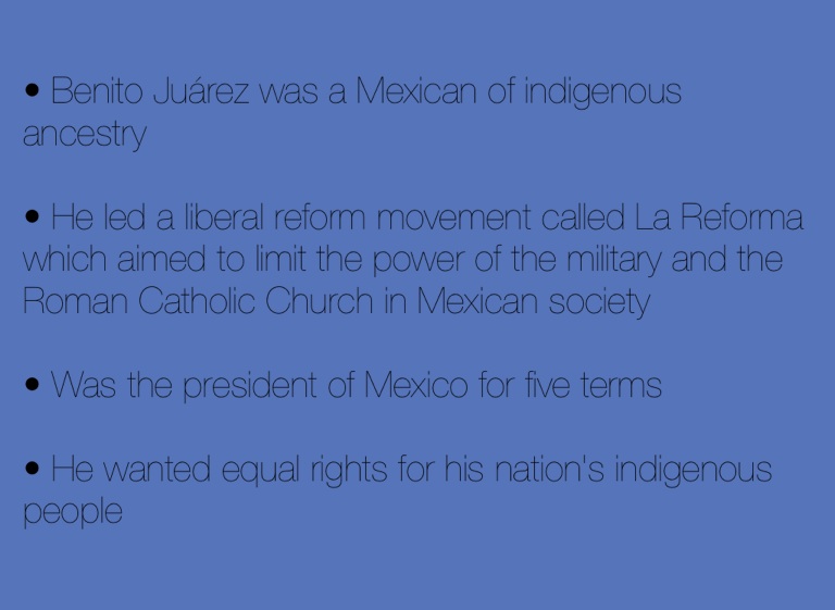 • Benito Juárez was a Mexican of indigenous ancestry