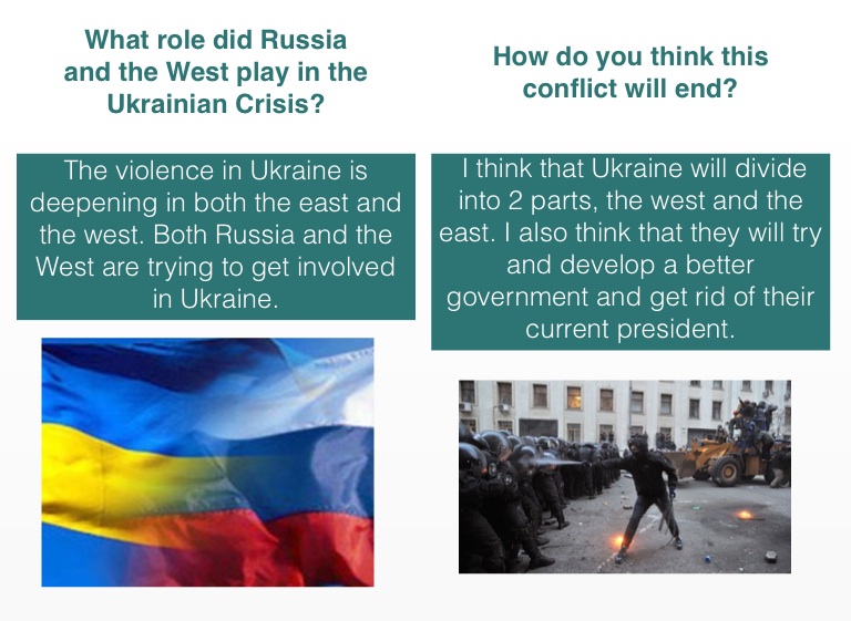 I think that Ukraine will divide into 2 parts, the west and the east. I also think that they will try and develop a better government and get rid of their current president.