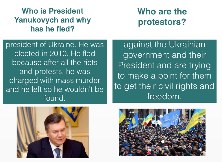 President Yanukovych is the president of Ukraine. He was elected in 2010. He fled because after all the riots and protests, he was charged with mass murder and he left so he wouldn't be found.