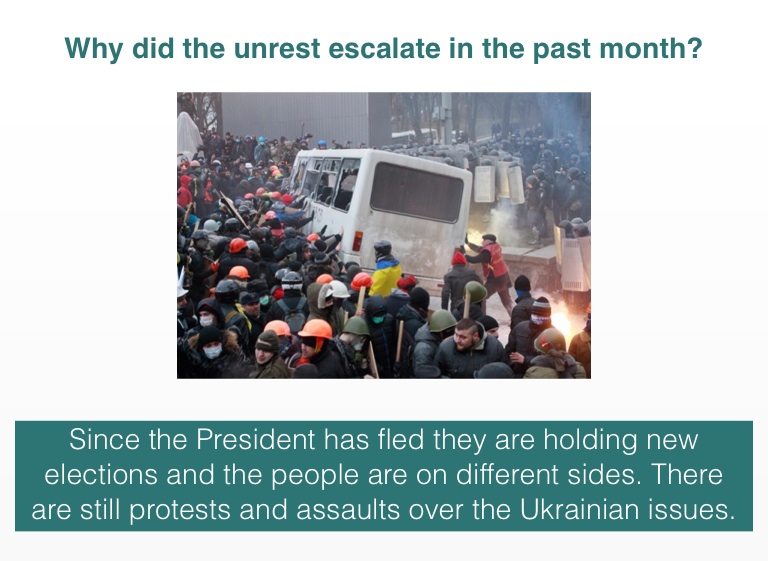 Since the President has fled they are holding new elections and the people are on different sides. There are still protests and assaults over the Ukrainian issues.