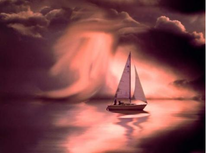 La barca navegaba por el mar en la madrugada con suavidad bajo los cristales lucía aquel brillo de la senda de la luna