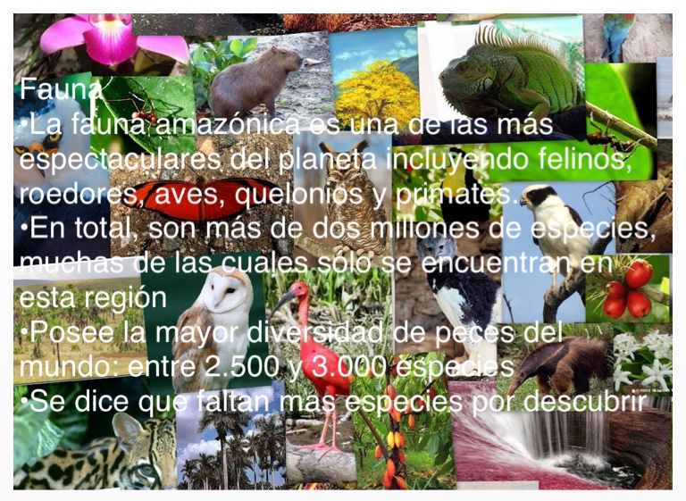 •La fauna amazónica es una de las más espectaculares del planeta incluyendo felinos, roedores, aves, quelonios y primates.