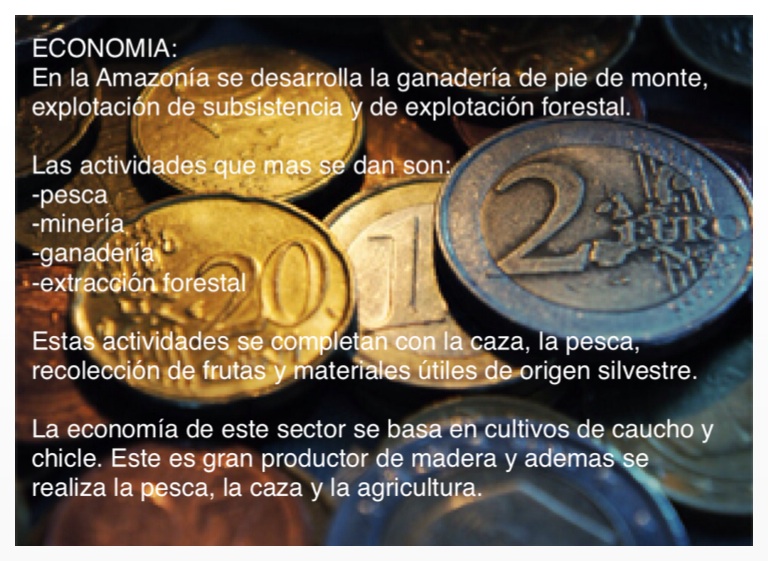 En la Amazonía se desarrolla la ganadería de pie de monte, explotación de subsistencia y de explotación forestal.