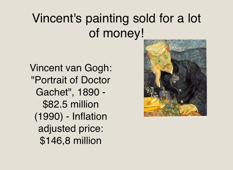 Vincent van Gogh: "Portrait of Doctor Gachet", 1890 - $82.5 million (1990) - Inflation adjusted price: $146,8 million
