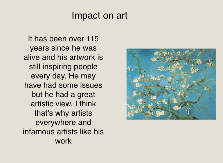 It has been over 115 years since he was alive and his artwork is still inspiring people every day. He may have had some issues but he had a great artistic view. I think that's why artists everywhere and infamous artists like his work