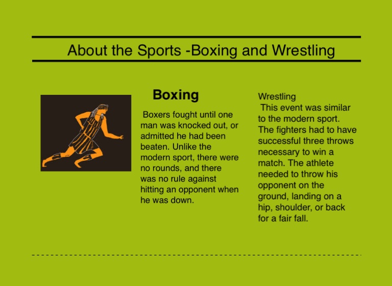 This event was similar to the modern sport. The fighters had to have successful three throws necessary to win a match. The athlete needed to throw his opponent on the ground, landing on a hip, shoulder, or back for a fair fall.