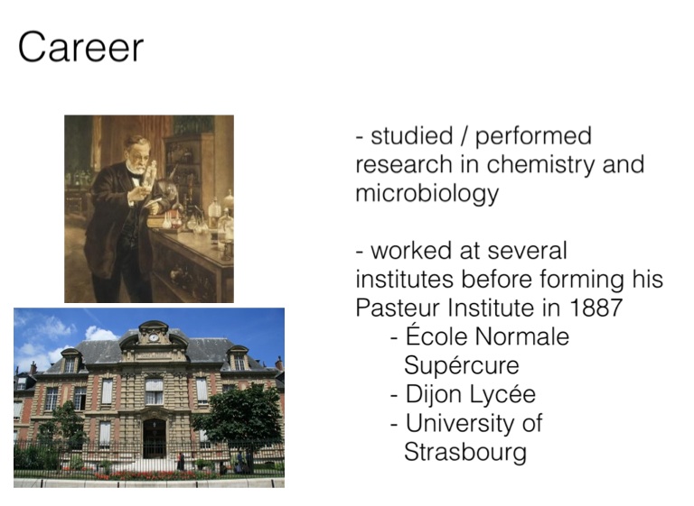 - worked at several institutes before forming his Pasteur Institute in 1887