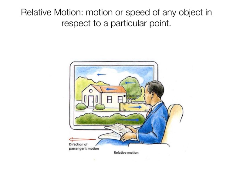 Relative Motion: motion or speed of any object in respect to a particular point.