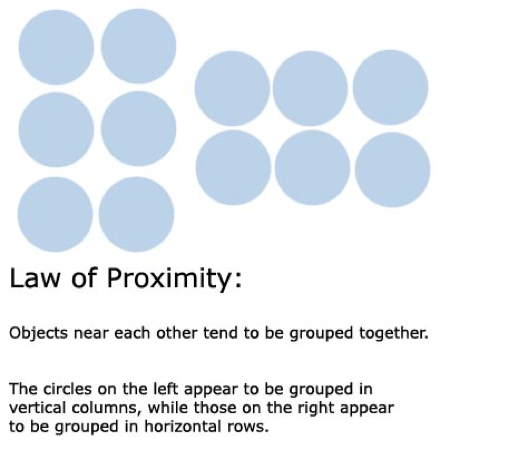 Proximity: the perceptual tendency to group together visual and auditory events that are near each other