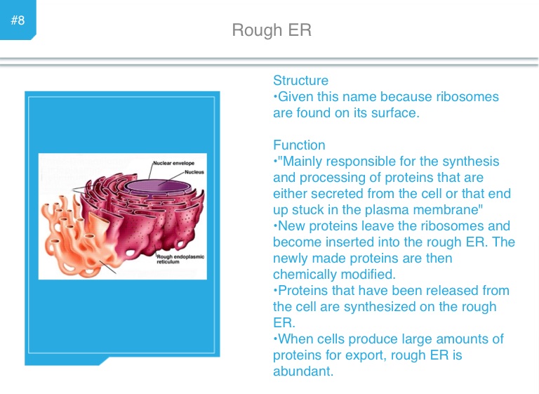 •"Mainly responsible for the synthesis and processing of proteins that are either secreted from the cell or that end up stuck in the plasma membrane"