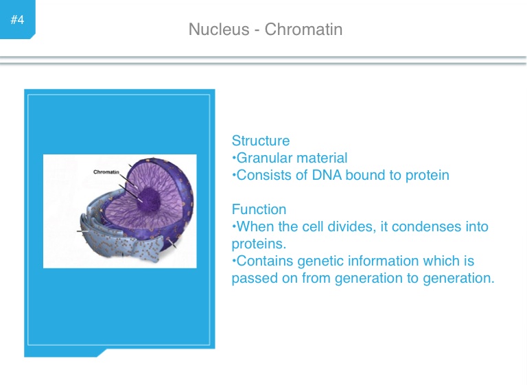 •Contains genetic information which is passed on from generation to generation.