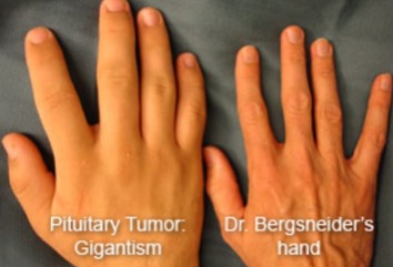 Some signs of Gigantism would be the obvious, the child may be larger than most children of the same age. Some parts may be larger than others by proportion. When dealing with gigantism the symptoms may vary, common symptoms include large hands and feet,large heads,lips or tongue, prominent jaw or forehead and also coarse facial features. But the symptoms the child experiences may depend on the size of the tumor in the pituitary gland. As the tumor is growing it presses against the nerves in the brain. It causes most people to experience nausea,vision problems, and even headaches. Other common symptoms include: