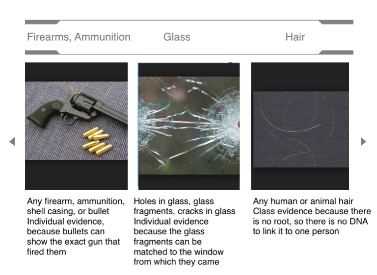 Individual evidence because the glass fragments can be matched to the window from which they came