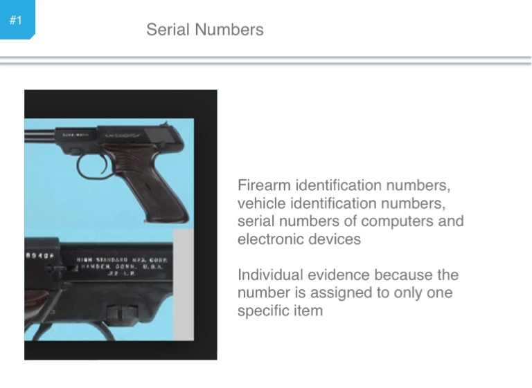 Firearm identification numbers, vehicle identification numbers, serial numbers of computers and electronic devices