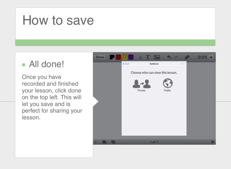 Once you have recorded and finished your lesson, click done on the top left. This will let you save and is perfect for sharing your lesson.