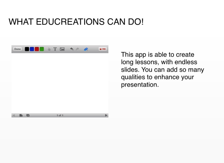 This app is able to create long lessons, with endless slides. You can add so many qualities to enhance your presentation.