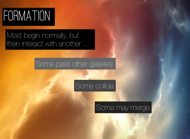 Most begin normally, but then interact with another galaxy