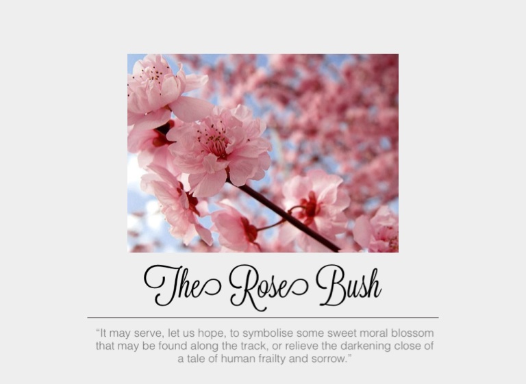 “It may serve, let us hope, to symbolise some sweet moral blossom that may be found along the track, or relieve the darkening close of a tale of human frailty and sorrow.”