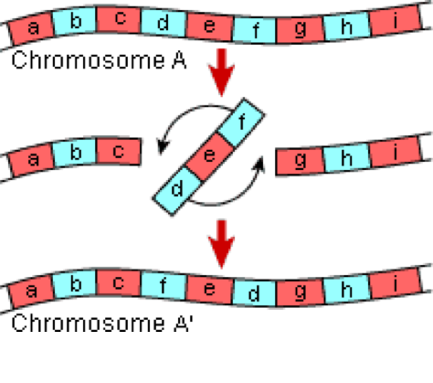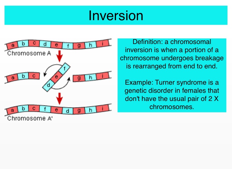 Definition: a chromosomal inversion is when a portion of a chromosome undergoes breakage is rearranged from end to end.