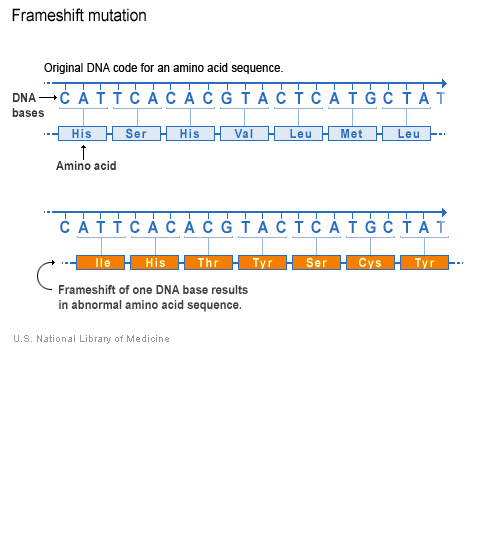Definition: a frame shift mutation happens in a DNA strand when the number of nucleotides inserted or deleted is not a multiple of three, so that every single insertion or deletion is read wrong during translation.