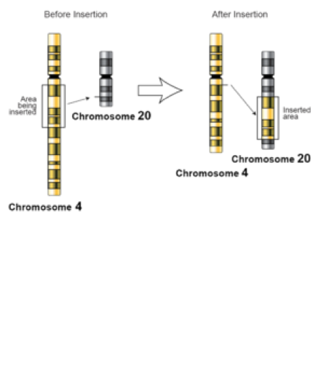 Definition: an insertion mutation refers to the insertion of a larger segment of chromosome being inserted into a small chromosome.