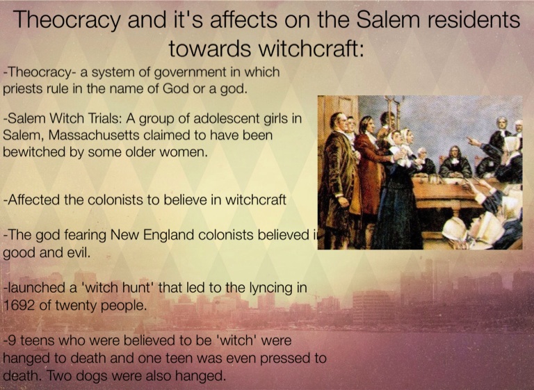Theocracy and it's affects on the Salem residents towards witchcraft: