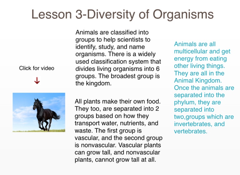 Animals are all multicellular and get energy from eating other living things. They are all in the Animal Kingdom. Once the animals are separated into the phylum, they are separated into two,groups which are invertebrates, and vertebrates.