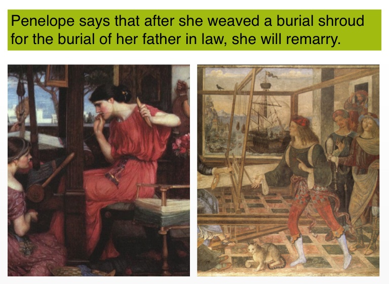Penelope says that after she weaved a burial shroud for the burial of her father in law, she will remarry.