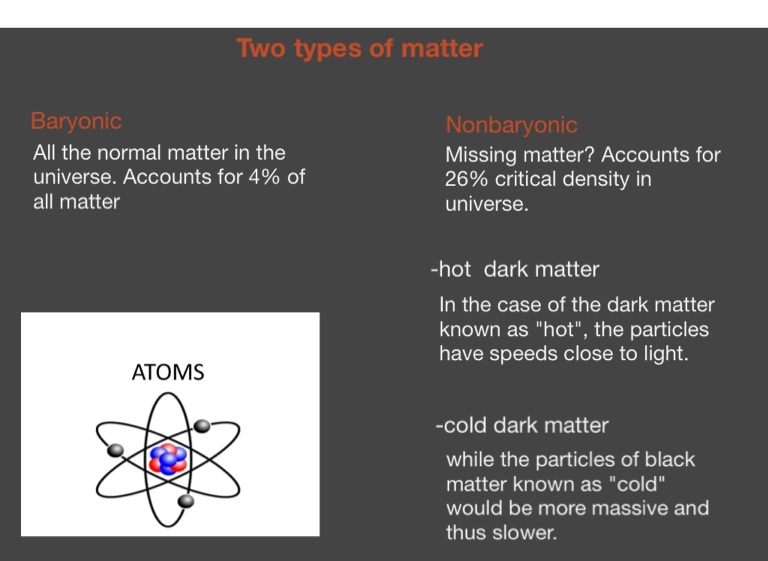 Missing matter? Accounts for 26% critical density in universe.