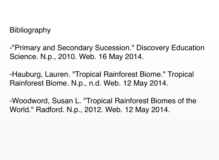 -Woodword, Susan L. "Tropical Rainforest Biomes of the World." Radford. N.p., 2012. Web. 12 May 2014.