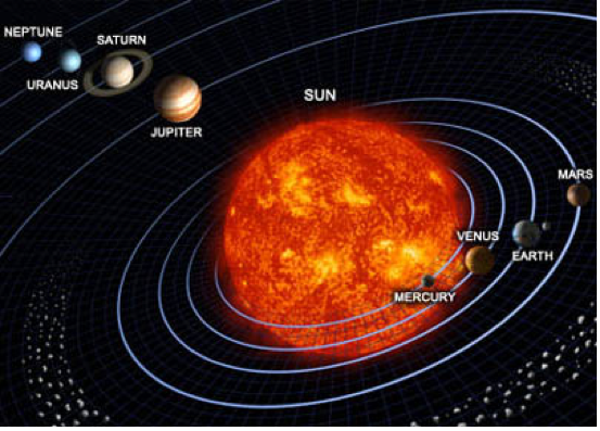 The Heliocentric system is a model of the solar system with all the planets orbiting the sun.