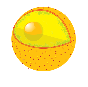 The nucleus consists of a dense material called chromatin and a small inner region known as the nucleolus, all surrounded by a nuclear membrane.